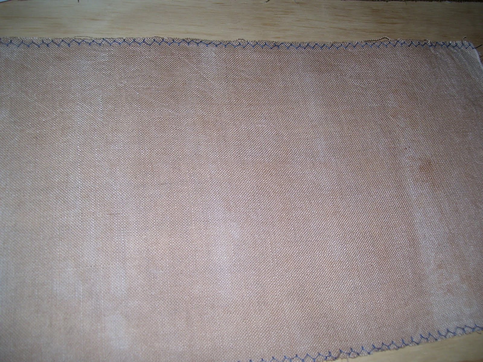I wanted to experiment w/tea~dying my own cr. st. fabric, so this is how my 32ct. cream Belfast linen turned out. This first pic I placed it in a pan w/tea and let it soak for several hrs. It is actually a bit darker than it shows here.